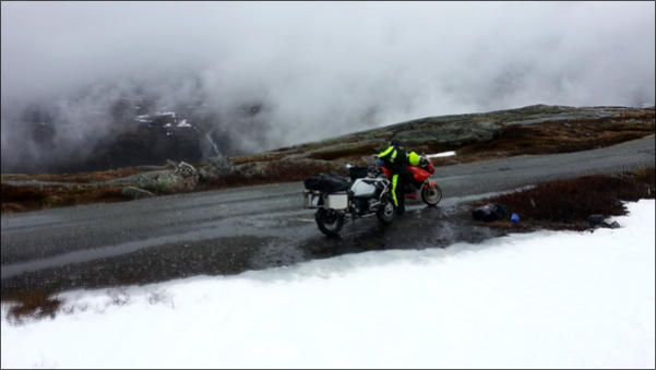 Die Nacht am Geirangerfjord im Zelt war kurz und kalt (3 Grad). Zu allem Übel war